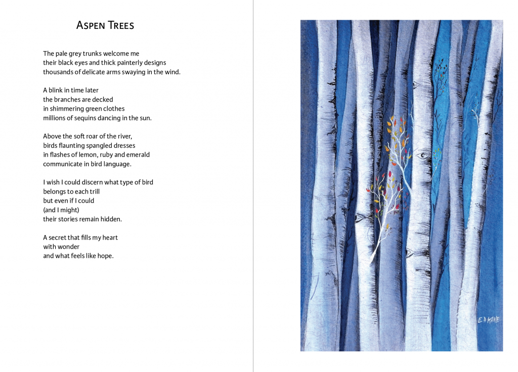 These are poems of noticing, opening and relishing. Poems that remind us how deeply connected we are to all around us, from the Acorn Woodpecker to the uncountable particles of star dust swirling the universe. And when combined with the stunning art of Edward Kane, these poems become prayer, become lifeline, become an invitation to be wildly present in our own lives. It’s never been more important that we, like Julie Potiker, choose to pause, to integrate, to turn toward peace.